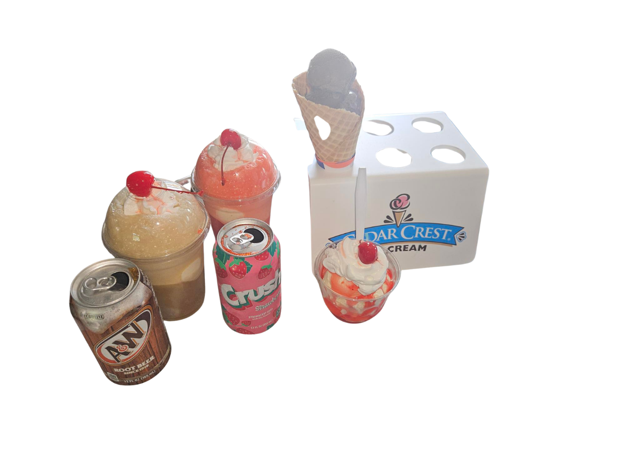 - Soda Float $7.00 (16oz cup, lid, straw, spoon, 2 Scoops of Vanilla Ice Cream, and a can of Soda)